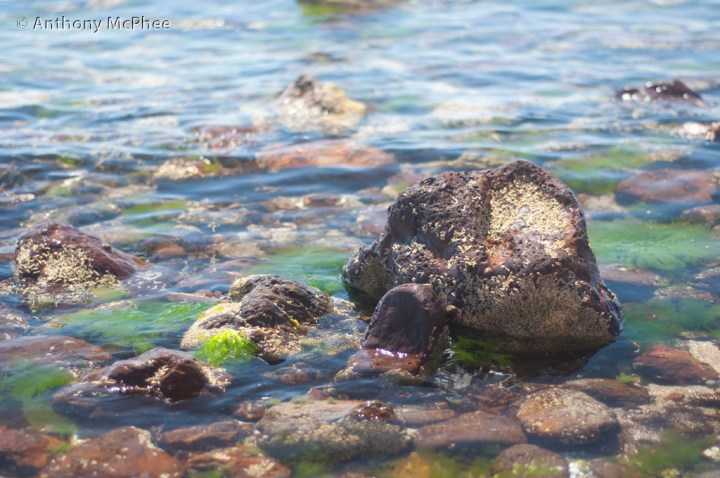 See how the surface of the water turns from relatively opaque to very clear. The true colour of the rocks – previously hidden beneath contrasty glare from the sun – can now be seen too.